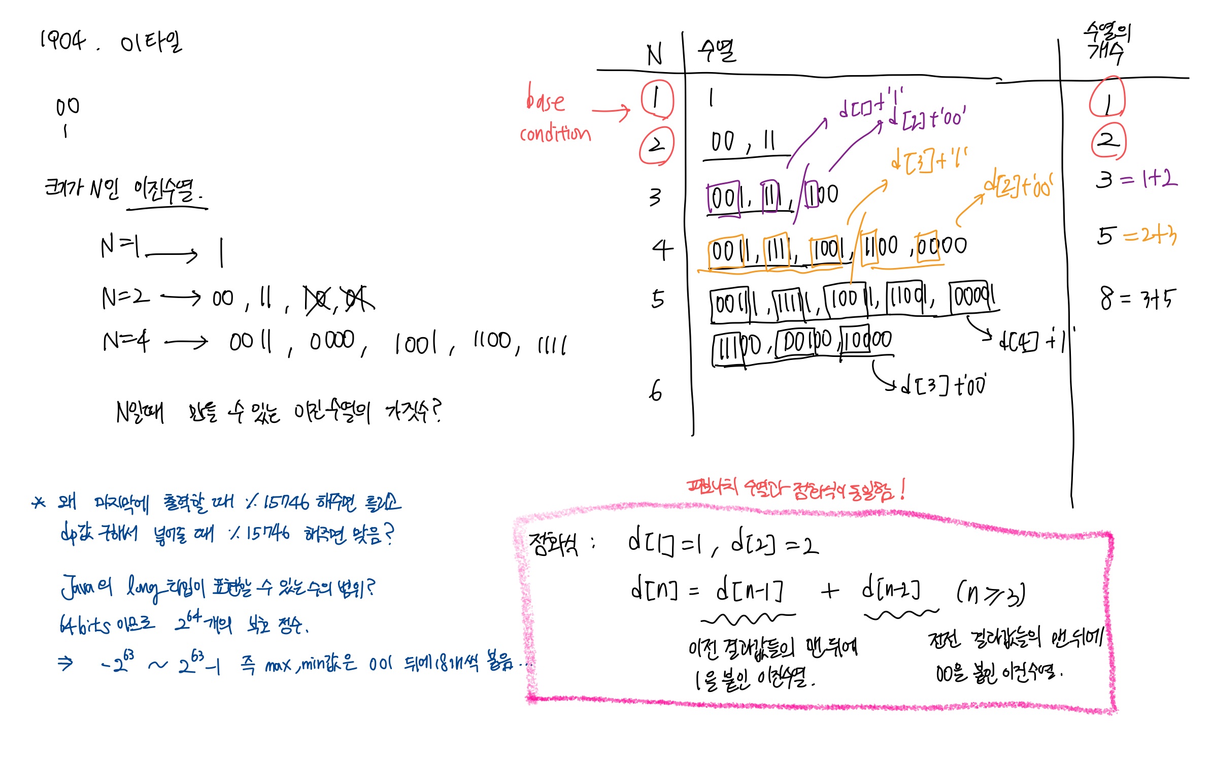 그런데 dp배열은 long크기까지만 저장 가능하므로 dp배열에 피보나치수를 저장할 때마다 비트가 잘려서 저장되는 일이 발생한 것.