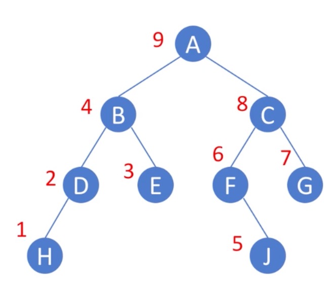 post-order(후위 순회)로 트리의 노드를 읽으시오.