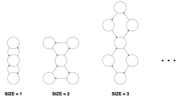 이 문제는 세 가지 모양의 그래프와 생성된 정점의 특징을 분석하는 것이 핵심인 문제입니다. 각 그래프의 모양은 아래와 같습니다.