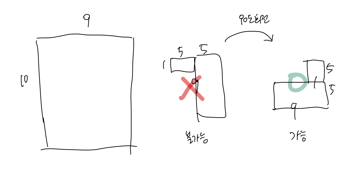 - 8가지 경우를 구현하여 HxW 격자 밖으로 스티커가 나가지 않는지 확인